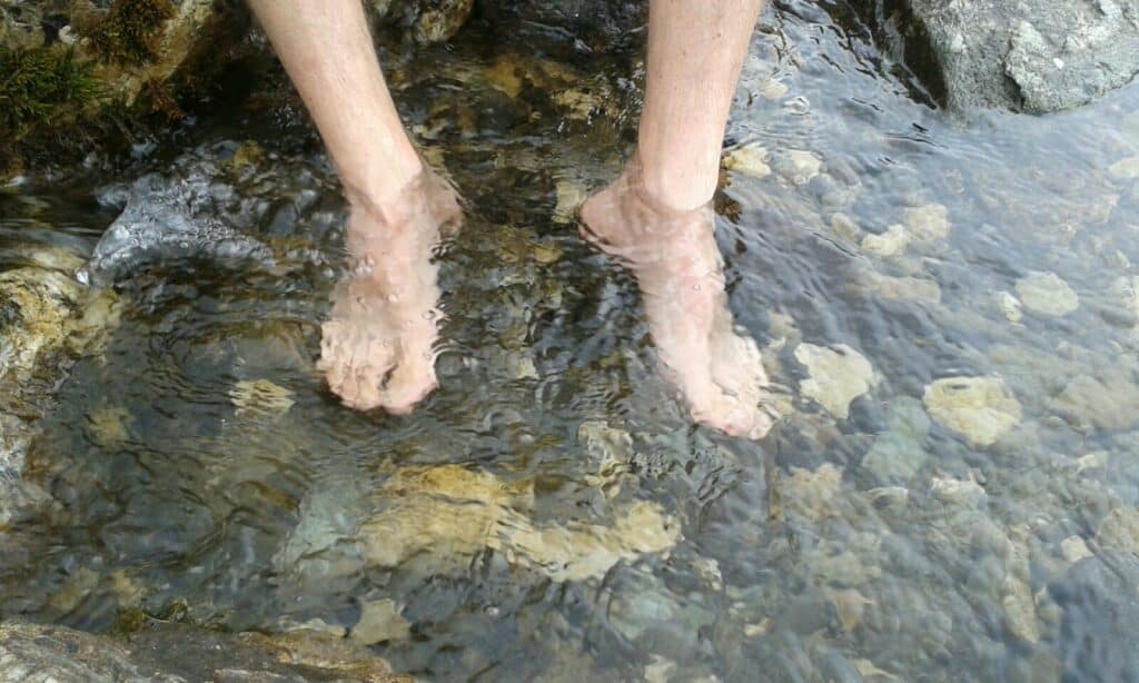 Technique du bain de pieds. Ramener une petite bassine et une serviette.